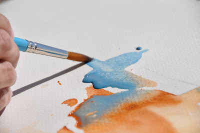 You start with a big splash of colour…and let it dry… the most important rule is to be patient, make regular pauses and avoid overworking: that is what’s the tea for… drink some tea and enjoy watching the colours dry in front your eyes changing the intensity and creating estrange textures.